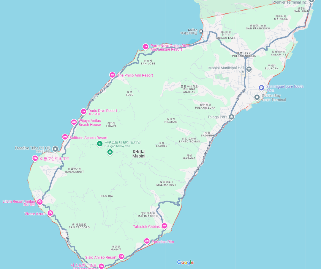 - 마닐라 → 마비니(Anilao 기준)