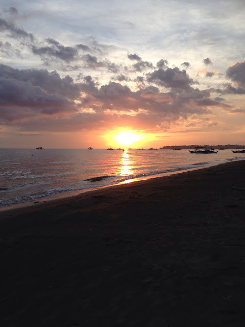 해가 기울 무렵, Binirayan Sports Complex 앞 바다가 금빛으로 물든다.