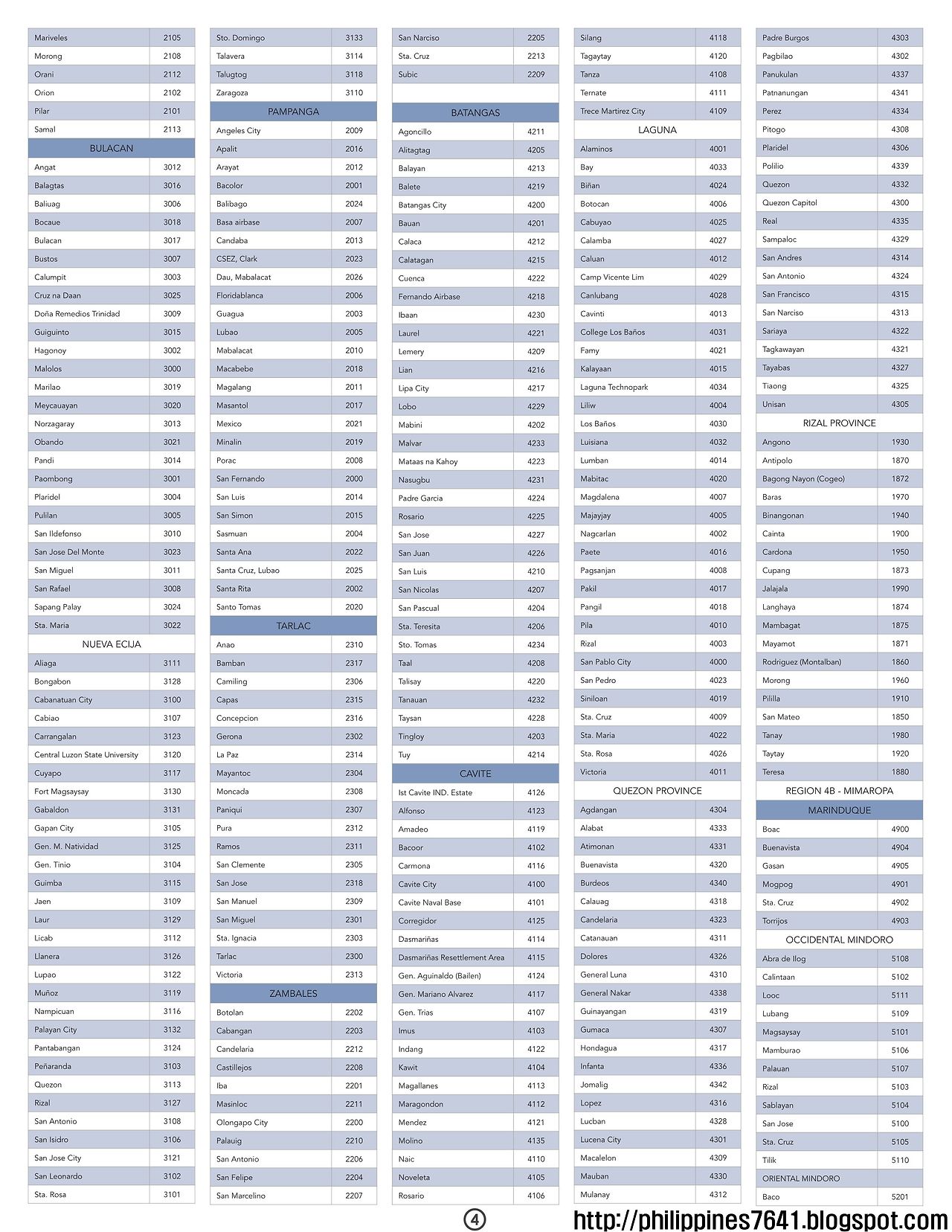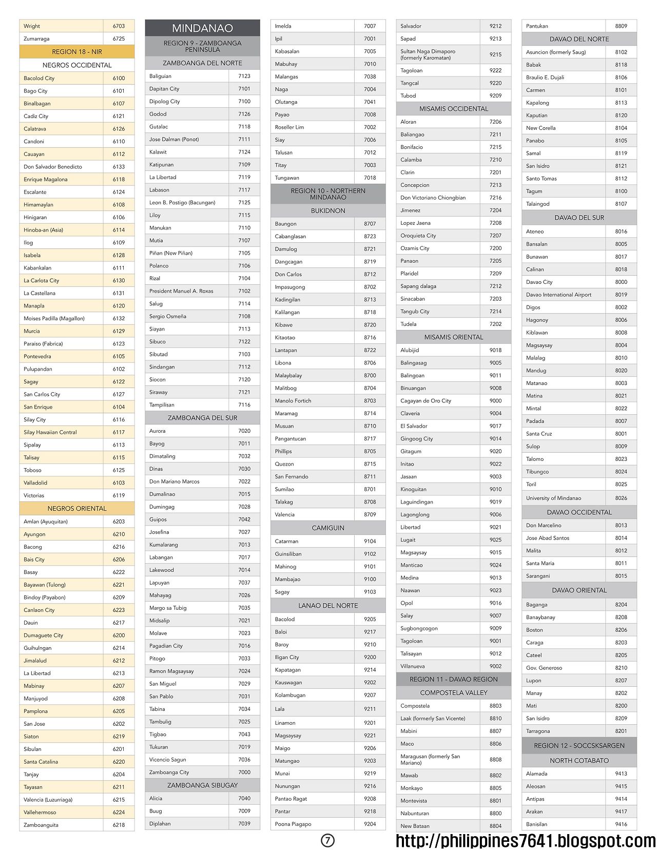 일반 필리핀 우편번호 (Philippine ZIP CODES), 마닐라/세부/보홀/보라카이/다바오/일로일로/바기오/팔라완/민다나오/민도로/바탕가스/라구나 전국 우편번호 philippines7641 2025. 11. 27. 필리핀 우편번호 (Philippine ZIP CODES), 전국 우편번호 확대해도 해상도 유지 됩니다. 원본 크기는 2550X3300 JPG 파일 입니다. 어렵게 구했습니다. 부디 유용하게 쓰시기 바랍니다. 그리고, 파일을 압축하여 게재 합니다. 필요하신 분들은 다운로드 하여 압축을 푸시고 필요 하실 경우 프린트 하셔서 보실수도 있습니다. 필리핀 전국 우편번호(Philippine ZIP CODES) 다운로드 이곳을 클릭하세요. 필리핀 우편번호 검색 웹사이트 바로가기(필포스트) 공유하기 게시글 관리 필리핀7641을 걷는 시간 저작자표시 비영리 변경금지 (새창열림) '일반' 카테고리의 다른 글 필리핀 정부의 제로잔액청구제도(zero-balance billing)로 병원 의료/비용/청구/입원/수술비는 무료인가요?, 87 DOH hospitals with zero balance billing list (0) 2025.11.28 필리핀 보건소(RHU,BHS) 정보/병원/위치/설명/이용/안내, Rural Health Unit(RHU/Health Center), Barangay Health Station(BHS) (0) 2025.11.28 필리핀 결혼하는 커플이 줄었다(Fewer couples tie the knot in Philippines) (1) 2025.11.26 필리핀 쌀 킬로그램당 20페소 등록 시스템 출시(Registry system launched for P20/kilo rice program) (0) 2025.11.25 필리핀 민속촌/스페인시대·원주민 문화·전통 가옥 보존지, 전통마을/유산마을, Philippines Heritage Town (0) 2025.11.17 댓글