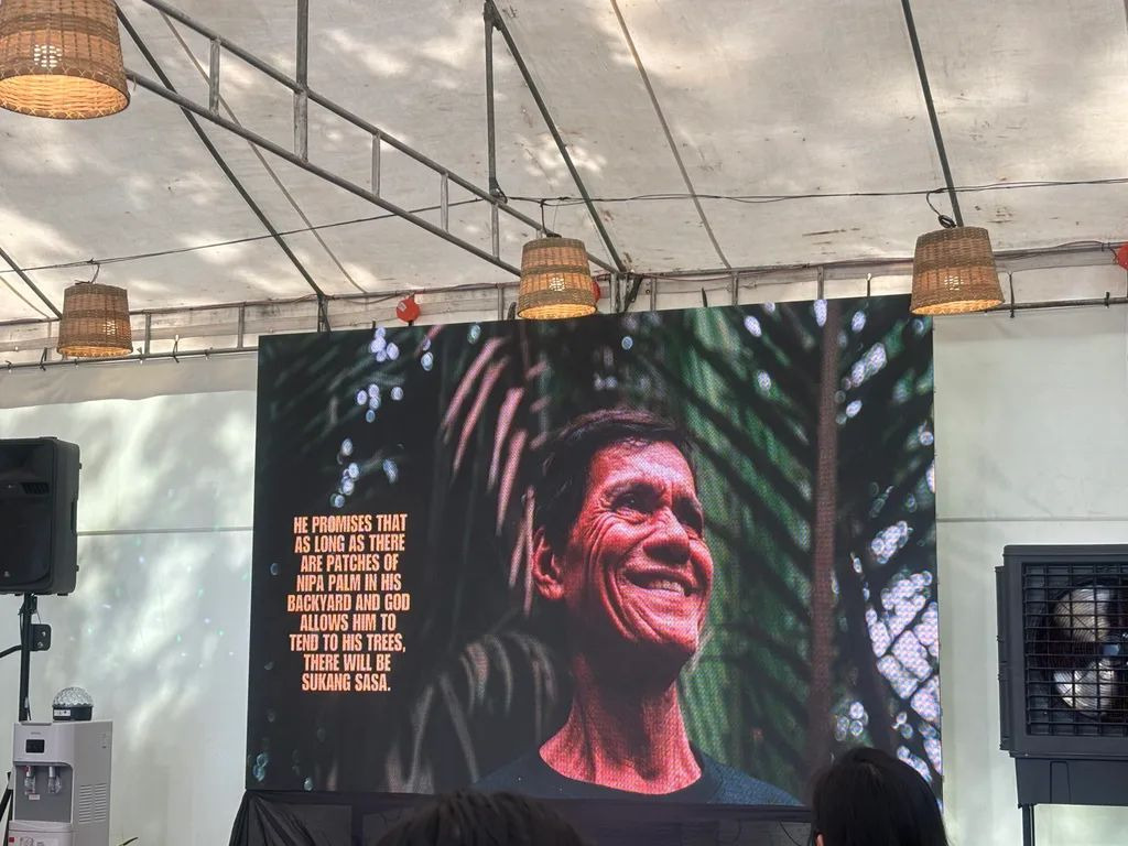 해가 뜨기 전, 그는 할아버지가 한때 소유했던 1,500제곱미터 넓이의 습지에서 흔들리는 방카 (보트)를 타고, 고무로 감싼 믿음직한 나무 도구인 시니시카란을 가지고 니파나무를 찾습니다.