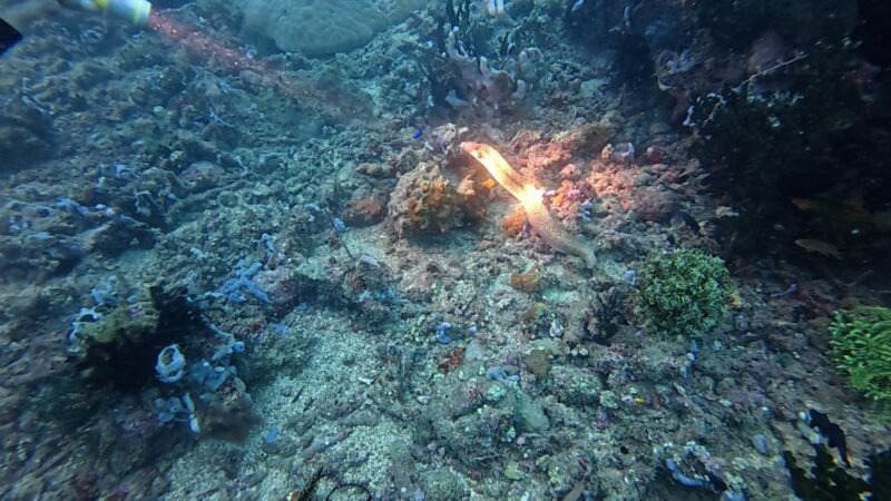 만탕갈레 알리부아그 다이브 리조트의 하우스 리프로도 알려진 이곳은 개구리물고기, 리본뱀장어, 어린 오징어 등이 서식하는 환상적인 머드 다이빙 명소입니다. 이 지역의 가장 큰 매력은 때묻지 않은 자연과 한적함입니다. 이곳에서의 다이빙은 마치 숨겨진 낙원을 발견하는 듯한 느낌을 선사합니다.