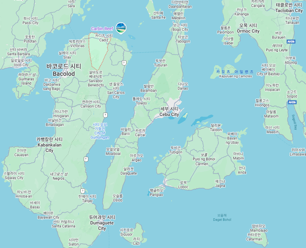 - 주도 바콜로드 시에서 북쪽으로 약 65km 거리