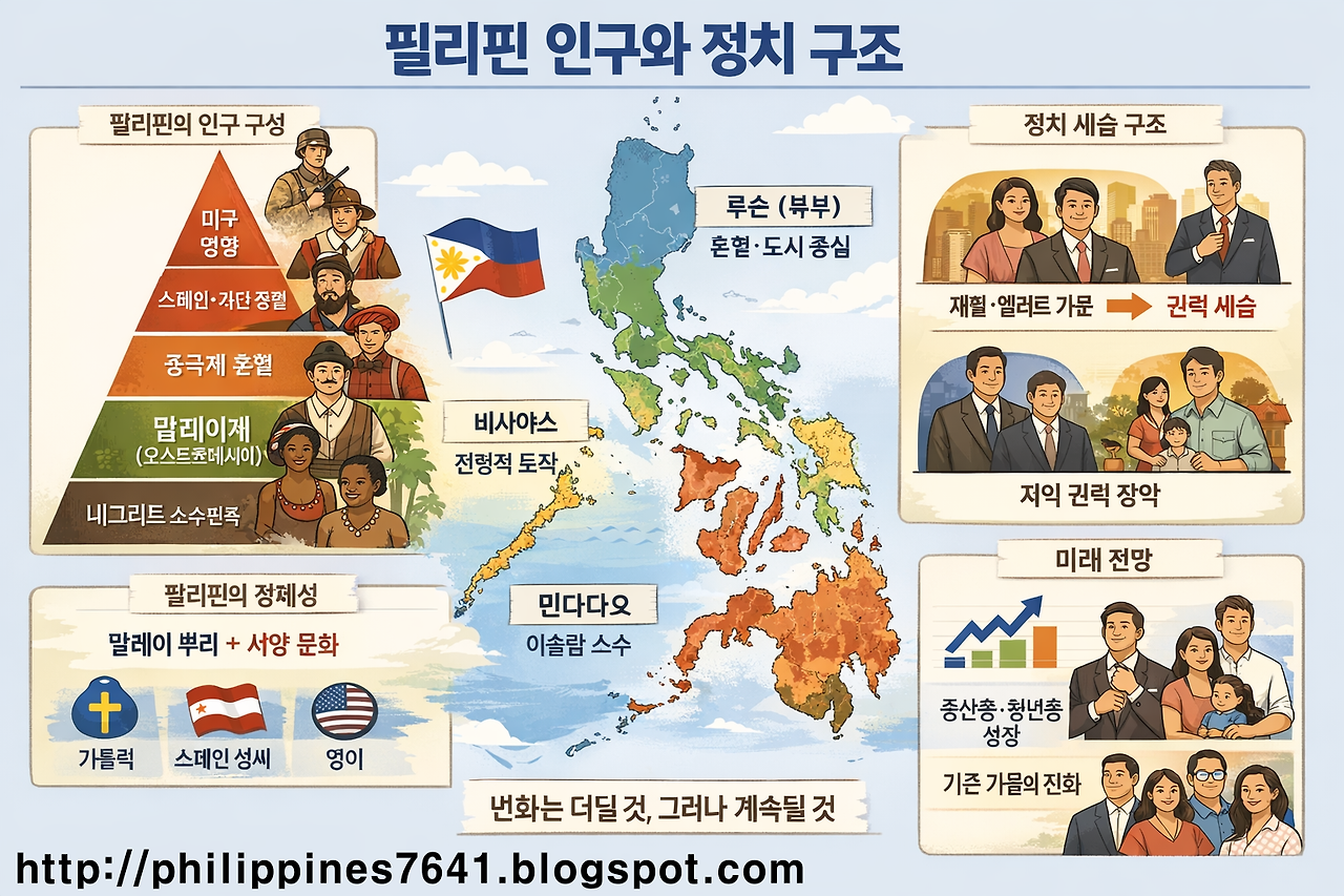 - 필리핀 인구의 중심은 **말레이계(오스트로네시아계)**이다.